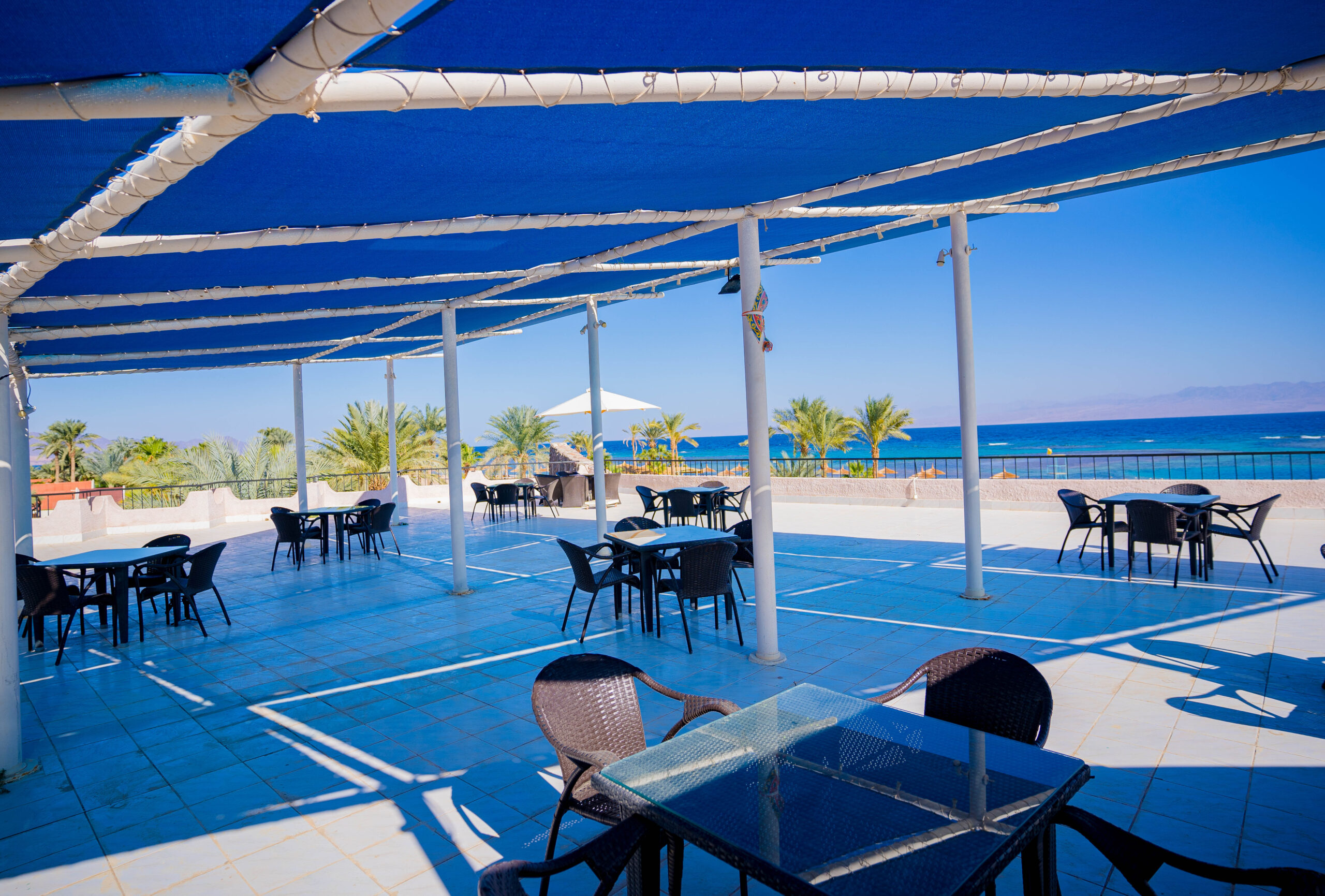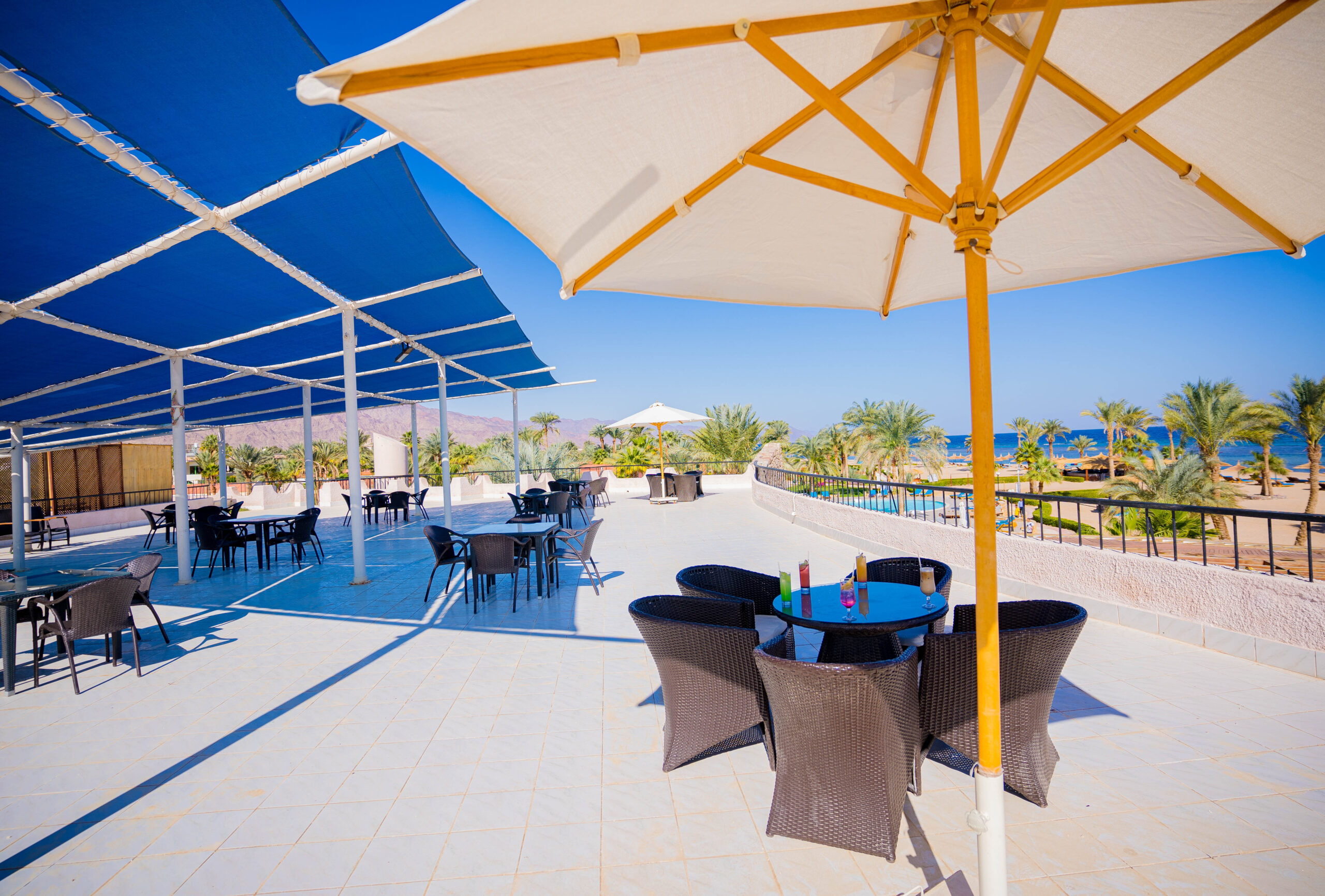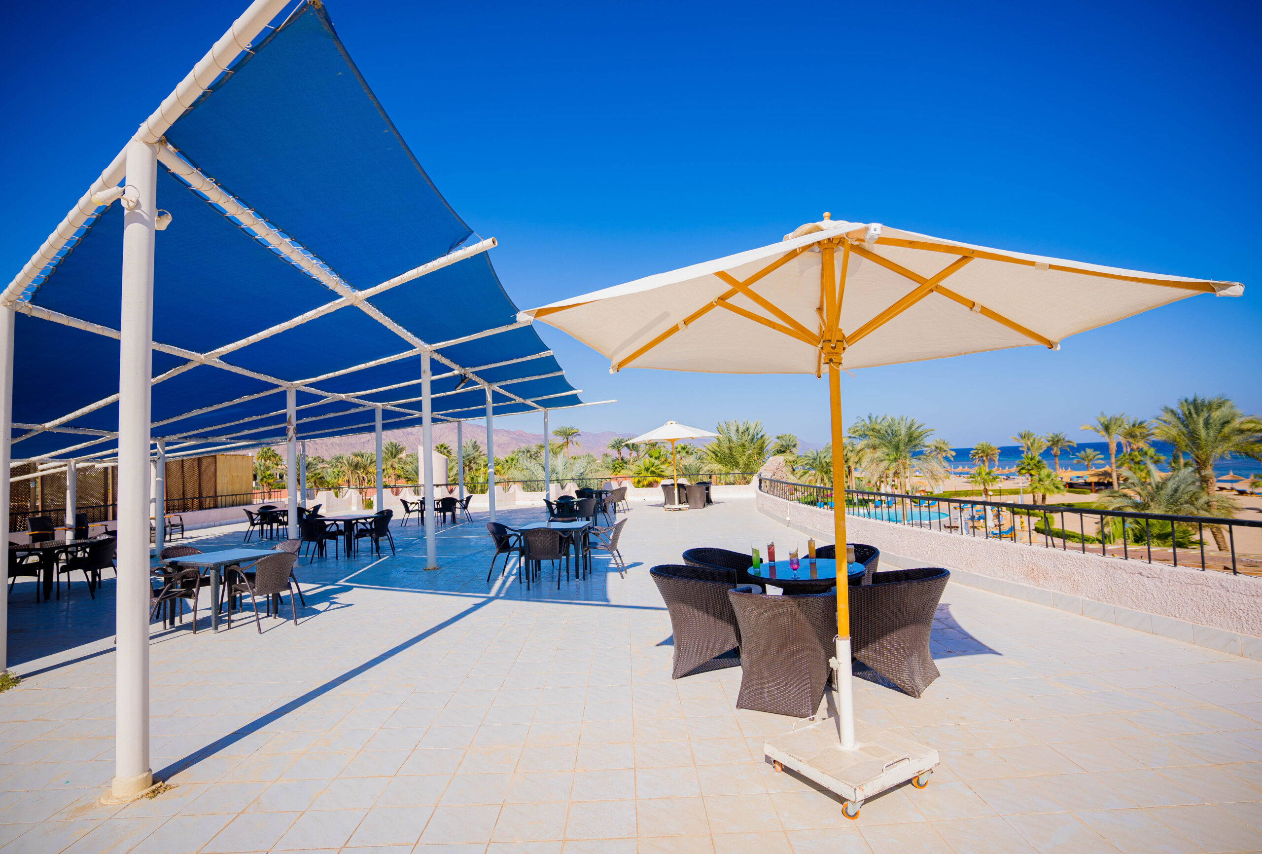 The Nuweiba Club Resort offers an outdoor swimming pool surrounded by a tiled sundeck terrace.