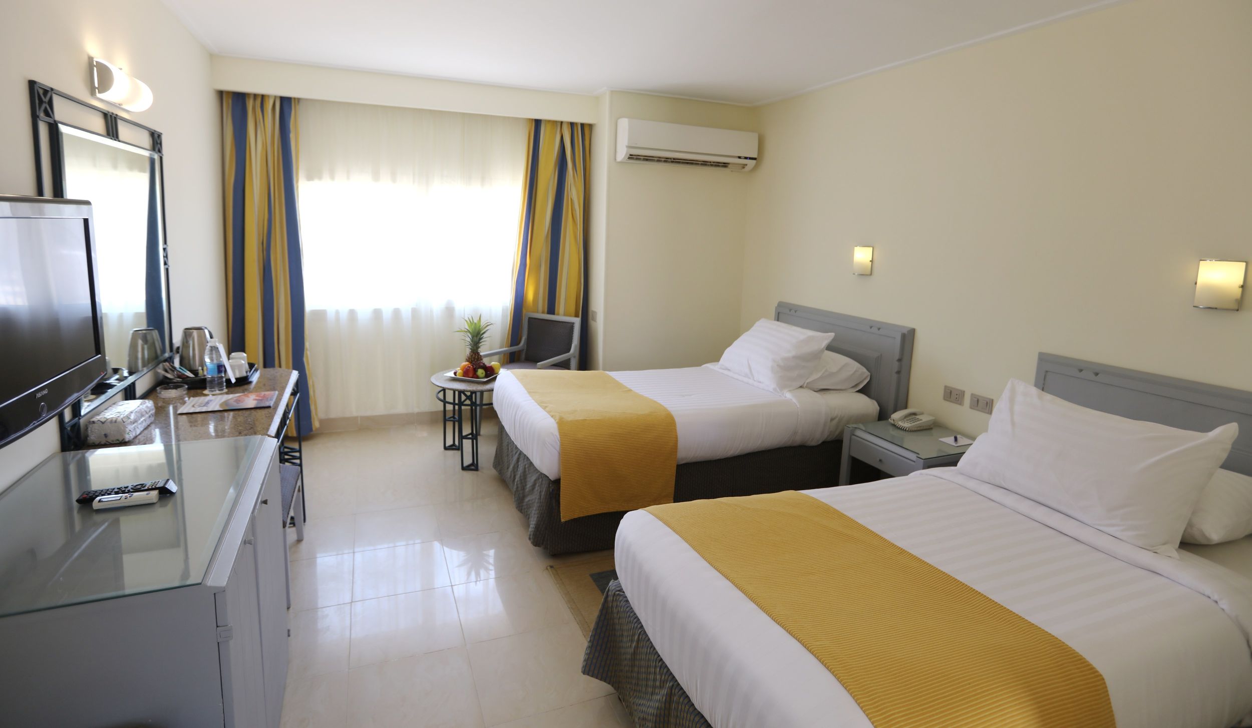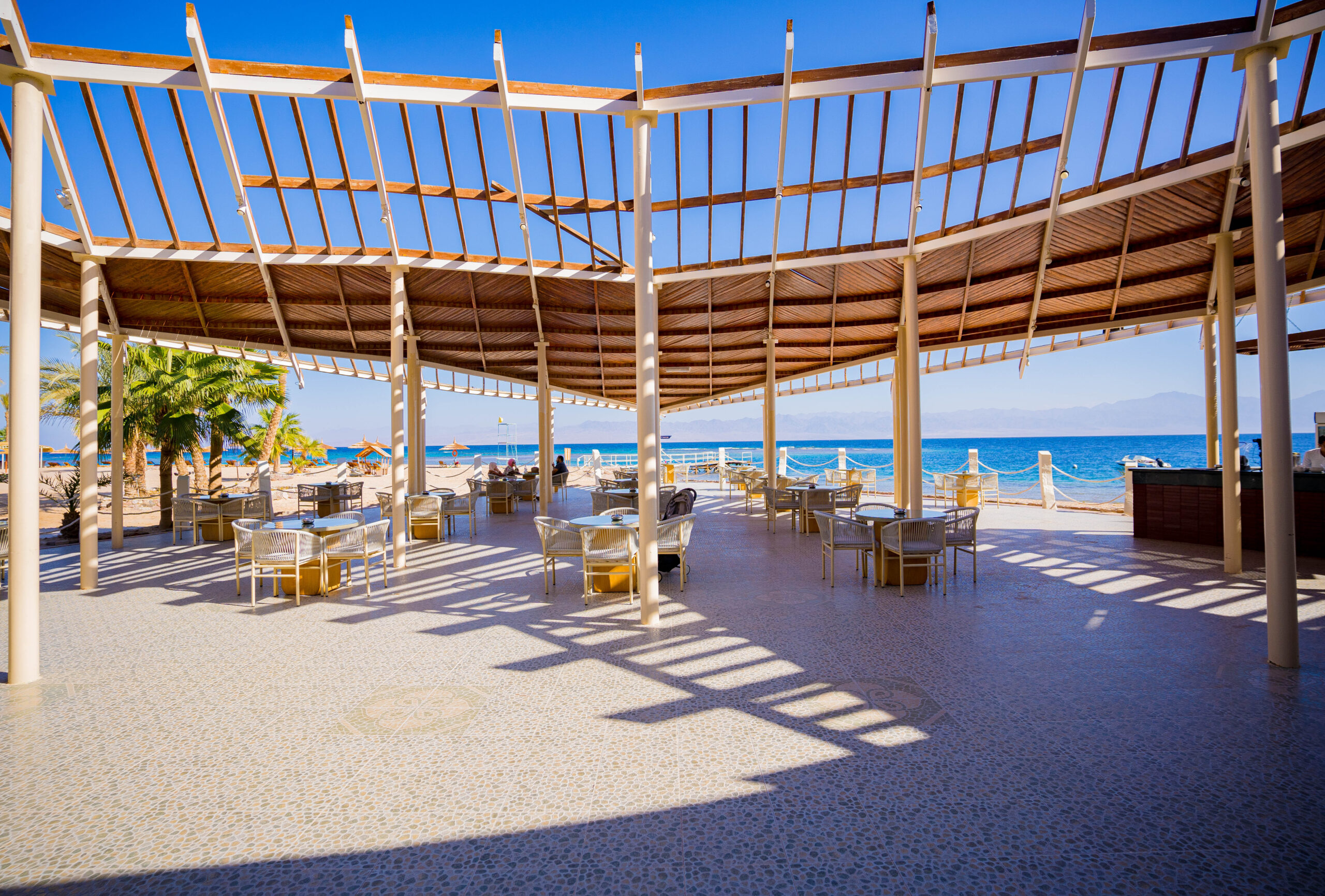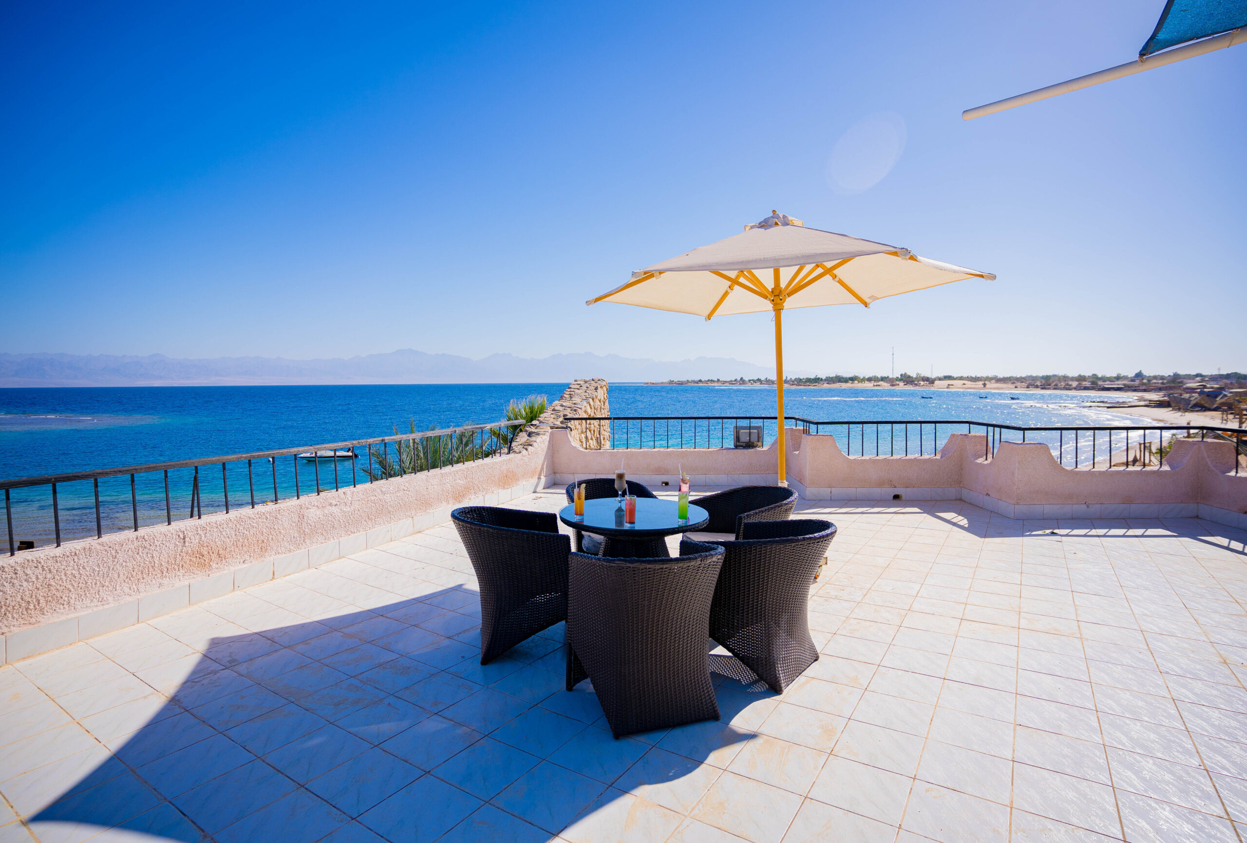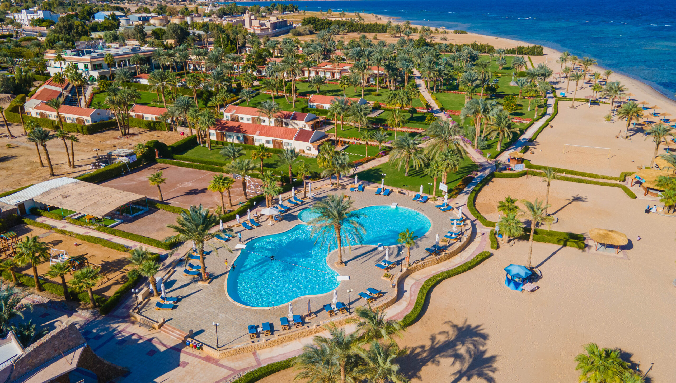 The Nuweiba Club Resort offers an outdoor swimming pool surrounded by a tiled sundeck terrace.
